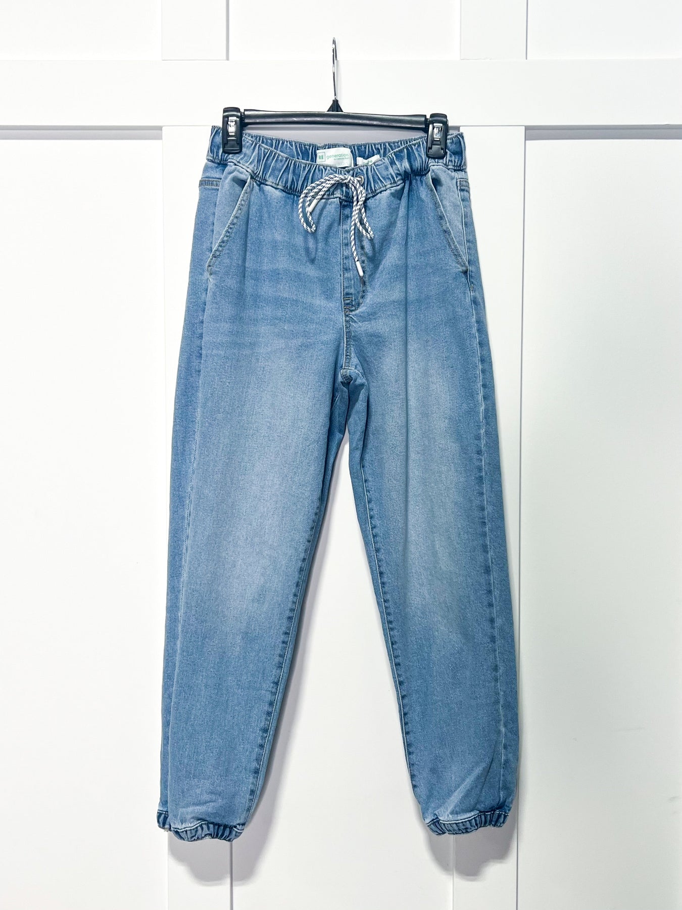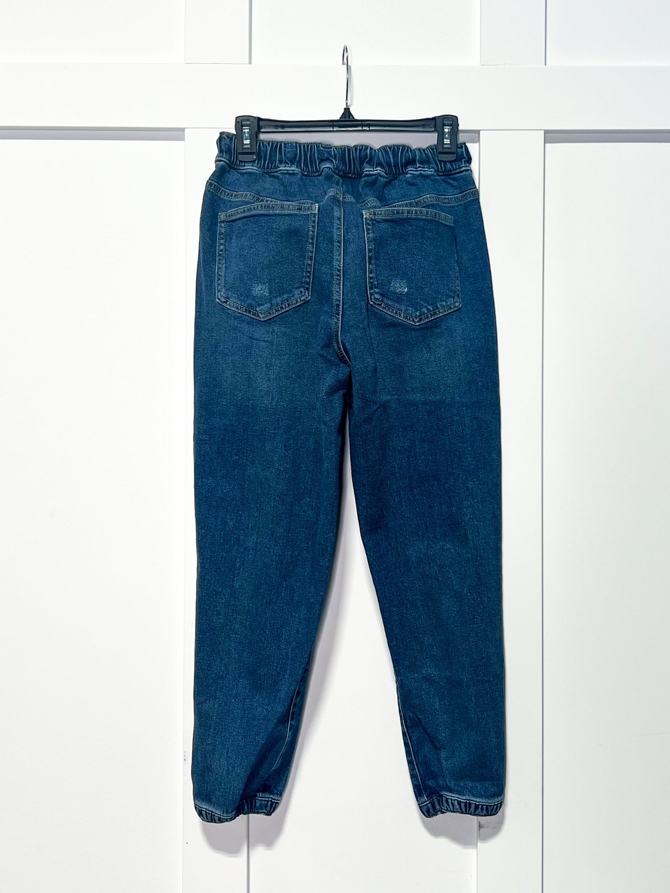 Introducing the Jasmine Joggers, a stylish and comfortable fusion of fashion and functionality. These jean joggers redefine casual wear with their unique features. Crafted with an elastic waistband, they offer a customizable fit that effortlessly adapts to your body shape. The inclusion of a paracord drawstring adds a touch of versatility, allowing you to adjust the waist to your preference while adding a trendy and rugged element to the design.